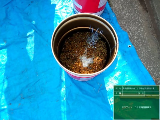 顔料を入れて色を調整することもできましたが、今回は苔本来の色を生かすということで、顔料なしで施工しました。