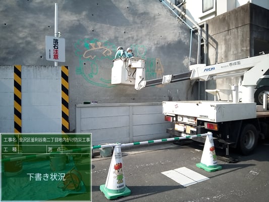 弊社社員が下絵書き、マスキング、施工と行いました。